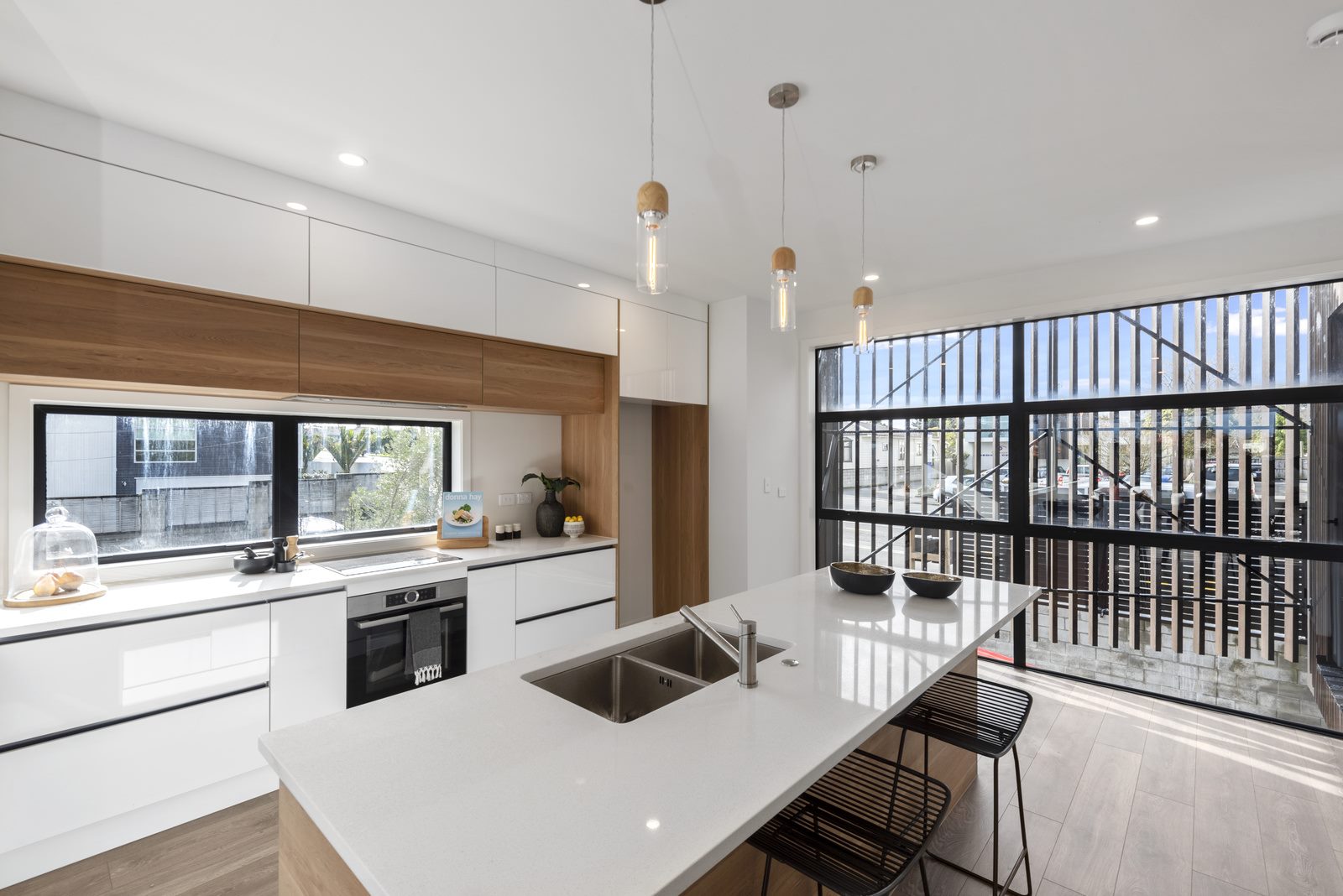 Ideally located alongside the iconic Hamilton Lake, this 481 sqm freehold section is one of four tastefully designed, yet sleek, uncomplicated architecture. Built new, the exterior features vertical cedar with contrasting black accents. Beyond the impressive full-length glass door you are greeted by the additional large living area opening onto the covered outdoor entertainers' deck. The ground level offers three bedrooms, bathroom, an internal access garage and the separate laundry room with ample storage.